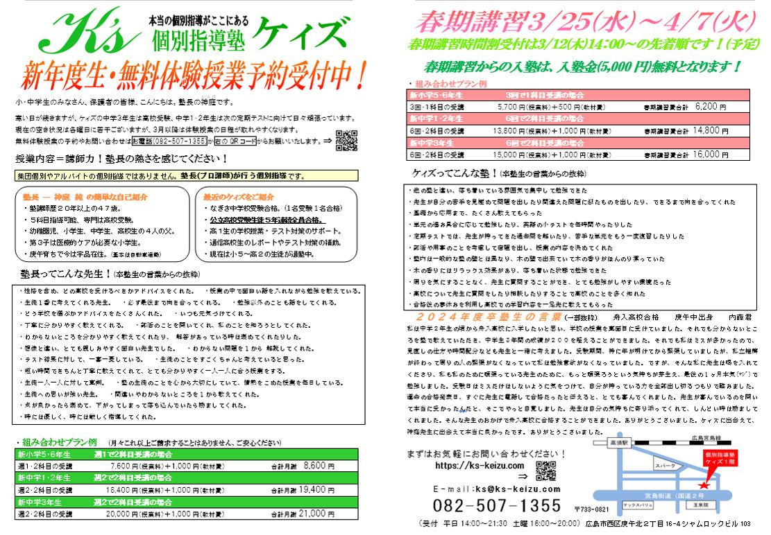 春期講習時間割受付は3/12(木)14時からのTELでの先着順です。ご希望の日時をお聞かせ下さい。